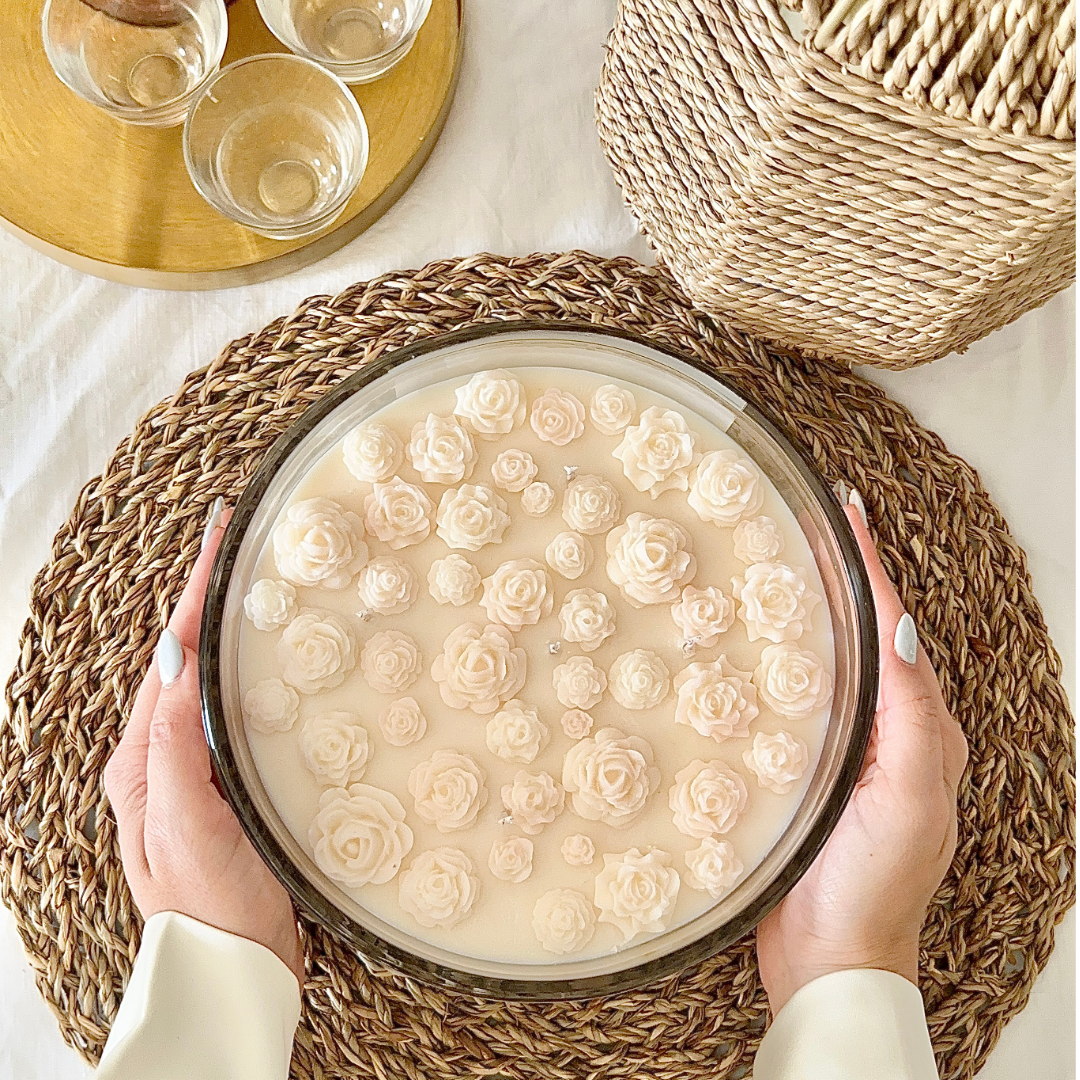 It's not just a candle; it's a work of art! This one-kilogram centerpiece candle, decorated with soy wax flowers, will turn your space into a haven of charm and relaxation.