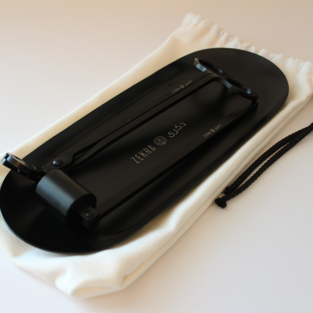 This set includes a stylish tray, a wick trimmer, and an elegant snuffer.