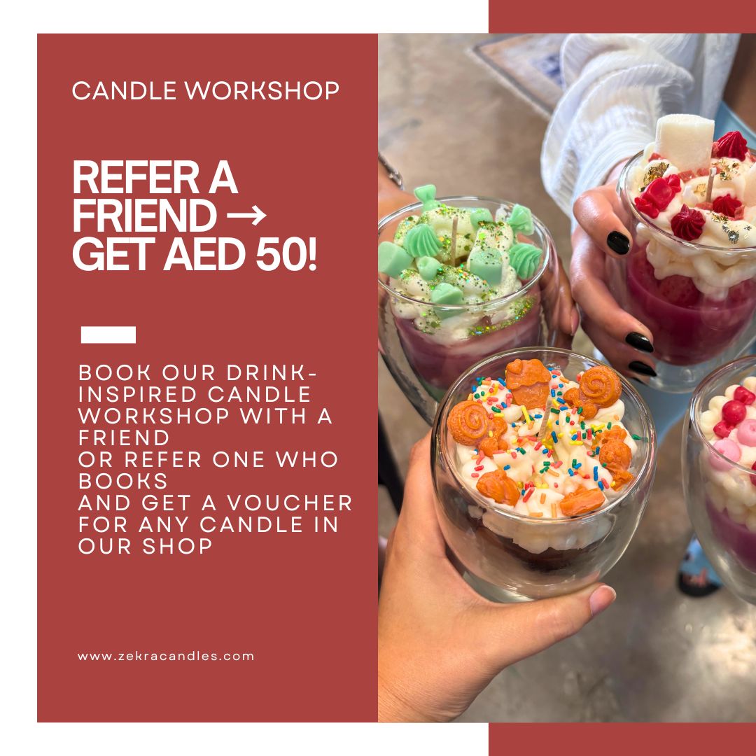 Bring a friend with you, and once they book, you’ll receive an AED 50 voucher to spend anytime on our online shop.
