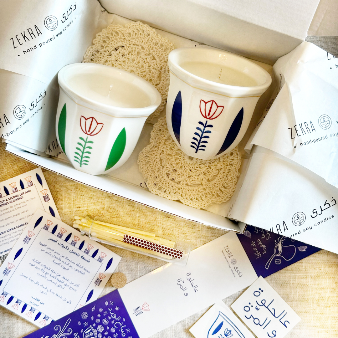 A bundle of two handcrafted candles inspired by tradition, each poured in a unique color and infused with nostalgic scents.